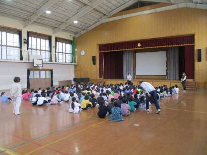 先生たちの自己紹介や学年目標の発表などをした後に、みんなで遊びました。