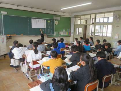 国語科の学習で、詩の勉強をしました。「準備」という題名の詩で、新たな学年の幕開けに、恐れずに挑戦していこうと勇気をもらえる素敵な詩です。様々な技法を用いて書かれていることにも着目して読むことができました。