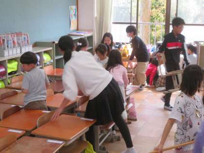 6年生になって、掃除場所が増えました。1年生の教室や特別教室、体育館など、学校全域の掃除を担当してくれています。みんなが気持ちよく過ごせるように、責任感をもって取り組んでほしいと思います。