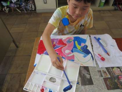 絵の具や水の量を工夫して混ぜると、素敵な色ができました。