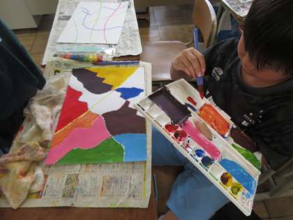 【3年生】 図画工作科「絵のぐ+水+ふで=いいかんじ」