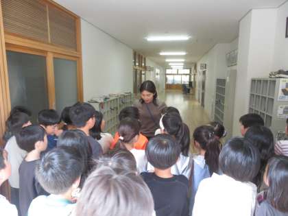 音楽室に入り、椅子が楽器であることを知って興味深々な様子でした。