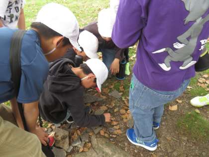 生き物を探したり、植物を探したり、自然のものに興味・関心をもって学習に取り組む様子が見られました。