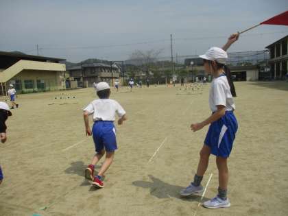 合図に合わせて,スタートし,一生懸命走っていました。