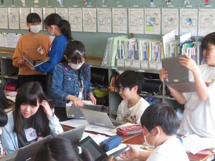 国語科「帰り道」の学習で、最後の時間に書いた文章を読み合いました。自分の考えと似ている友達や、考えが違う友達に対して積極的に話を聞きに行っていました。