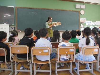 読み聞かせボランティアの方に、2冊の本を読み聞かせていただきました。