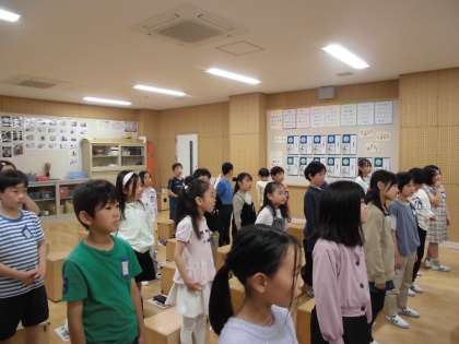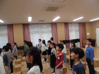 「友だち」の歌を音の上がり下がりや息つぎなどに気を付けてきれいな声で歌う練習をしています。表情にも気を付けて明るい声で歌うことができるようになってきました。1年生を迎える会でも歌うためみんな一生懸命練習しています。