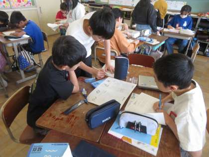 算数科の単元のまとめで、自分に必要なところを選択して学習に取り組んでいる写真です。自分の得意と苦手を分析して、その苦手を克服するために、学習内容を自己選択しながら取り組んでいます。
