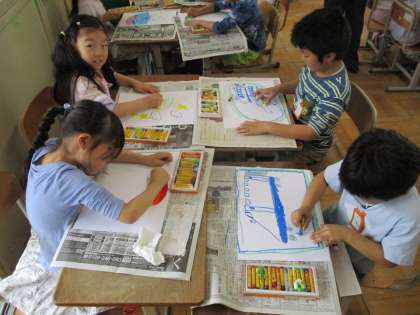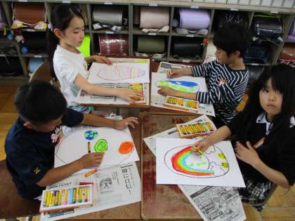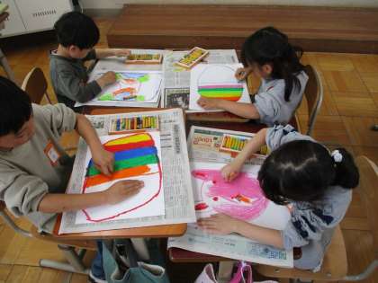 どんなものが生まれるのか想像しながらたまごを描いています。