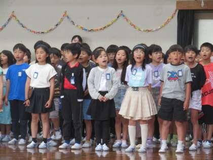 1年生の入場を拍手や花道で迎え、大きな声で校歌を歌っていました。