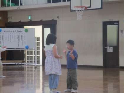 ついてから体育館で久しぶりに出会う友達が!!一緒にアルプス一万じゃくをしていました。
