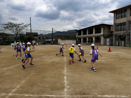 今日の学習では、初めて試合を行いました。約2年ぶりの試合だったので、ルールを覚えるための練習試合でしたが、とても一所懸命に取り組んでいました。早くルールに慣れて、作戦を生かした試合になっていくといいですね。