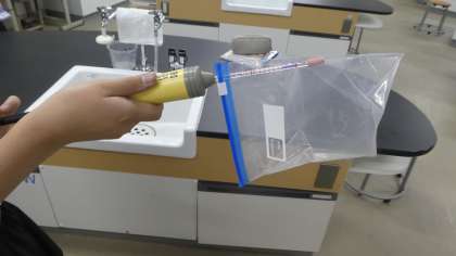 酸素と二酸化炭素について、石灰水や気体検知管を使って調べました。