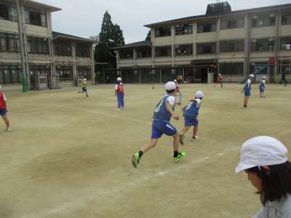 体育科の学習では、「リレー」の学習を進めています。今日ば少しでも自分のチームのタイムを縮めるために、バトンの渡し方を工夫したり、走順を工夫したりしました。バトンは次の人に渡すというよりも相手の手に押す気持ちで渡そうと意識してバトンミス少なくできるように頑張っていました。