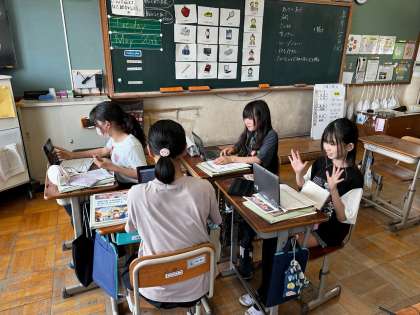 単元の最後に、自分がどれくらい話せるか録音して提出をしました。各自イヤホンをつけて、方向を考えて録画をしている様子です。