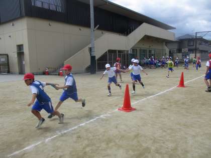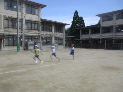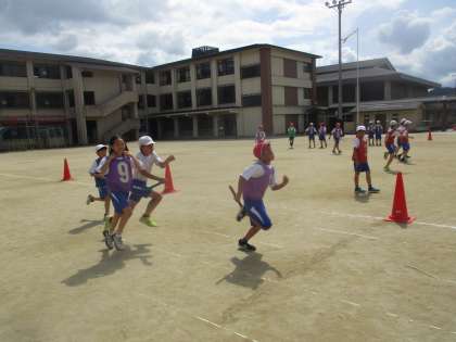 体育科の学習では「リレー」の学習を進めました。リレーの学習を通してバトンパスを工夫したり、走順を工夫したりとチームの中でタイムを縮められるようにさまざまな工夫をしました。一度に走るチーム数が増えるとバトンパスが難しくなりますが、その中でもバトンを渡す人が「スタートきっていいよ!」もらう人が「こっちこっち!はい!」と声を掛け合いながら頑張っていました。