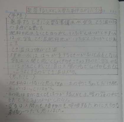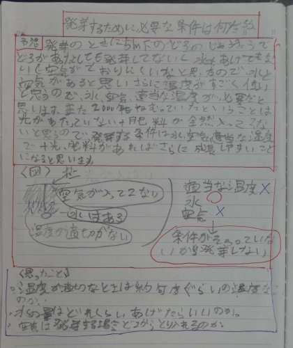 これまでの経験をもとに、発芽の条件について考えました。