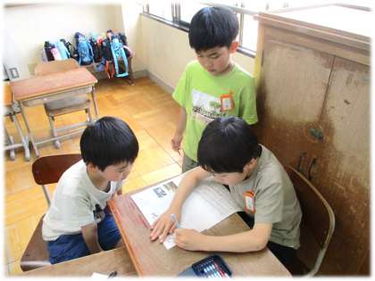 1年生に学校のいろいろな場所をお知らせする看板をつくっています。