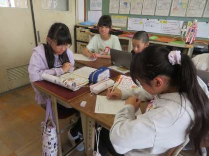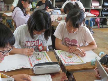 家庭科の学習では、朝食の大切さについて学習しました。その知識を生かして、理想的な朝食のメニューを考えているところです。