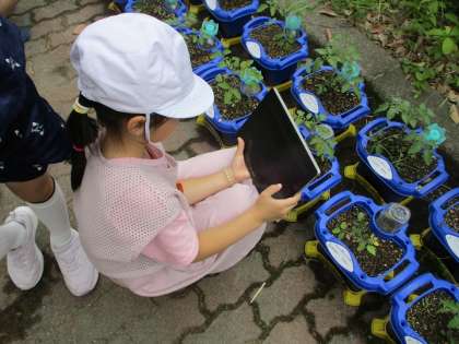 育てているトマトを観察し、観察メモをつくっています。