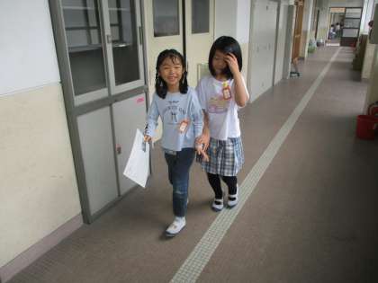 1年生との学校探検に向けて作成した教室看板を配りに行きました。