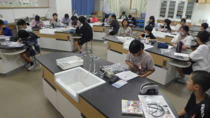 手首や首筋で、自分の脈をみつけるのに苦労している児童もいましたが、聴診器や拡声心音器、パルスオキシメーターなども使い、自分のはく動や脈はくを確かめていました。