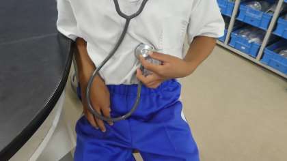 自分の手首や首筋、聴診器や脈拍計などで、自分のはく動や脈拍はくを確かめました。