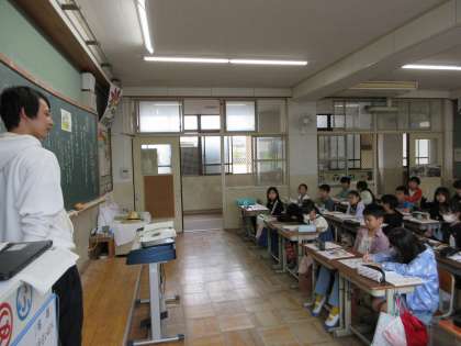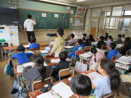 4年生の道徳の授業は堺先生と頑張っています。
