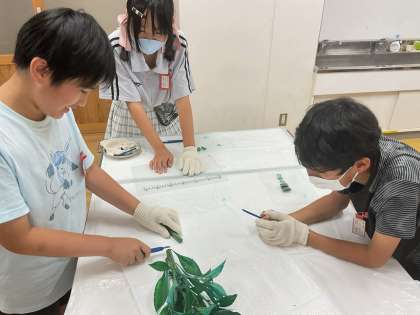 ホウセンカの水の通り道を色水で調べました。カッターナイフで、根・茎・葉それぞれ水の通り道を観察しました。