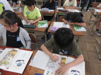 お家の人に班の友だちと文章がつながっているかを見てもらい、アドバイスももらいました。どの班も面白い物語ができましたね!