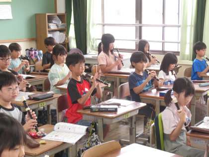 授業参観で練習した「ソ」の音がきれいに出せるようになっているので、「シ・ラ・ソ」を使った曲を演奏しました。心地よい音楽が聞こえてきて、思わず聴き入ってしまいました。