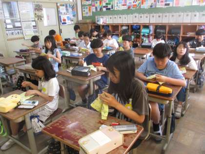 家庭科では、ひと針に心を込めての学習を進めています。今日は、「なみ縫い」と「本がえし縫い」に挑戦しました。動画を見てコツを考え、友だちと教え合いながら取り組んでいました。明日は「半がえし縫い」と「かがり縫い」に挑戦しようと思います。