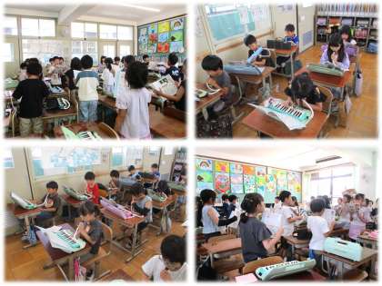 音楽の学習では、「ドレミのうた」や「かっこう」、「かえるのがっしょう」などの練習をしています。