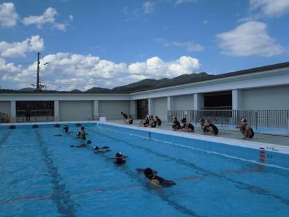 大の字で浮いたり、膝を抱えて浮いたりなど、子どもたちでアドバイスし合いながら楽しく真面目に取り組んでいます。
