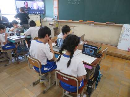 外国語の学習で、Zoomを使って他校の友達とやり取りをしました。はじめましての相手でも、すらすらと英語でやり取りをすることができていました。終わった後も「またやりたい!」と前向きな発言が聞こえてきました。