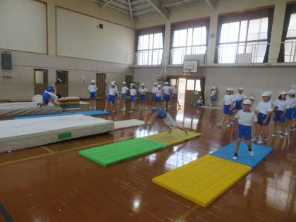 3組と4組の合同で体育を行いました。普段一緒に練習できない友達と練習し、お互いにアドバイスをし合うことで、上達する姿も見られました。人数が多いので、子どもたちも安全に配慮して学習に取り組んでいました。