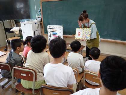7月3日木曜日の朝,図書ボランティアの方に,読み聞かせをしていただきました。今年度初めての読み聞かせ。絵本を2冊。「みんな,給食しっかり食べているかな?」と聞いてもらって,好き嫌いはやめようと思えるようなお話や,おなかのこびとがびっくりするから,暴飲暴食はやめようと思えるようなお話を読んでもらいました。