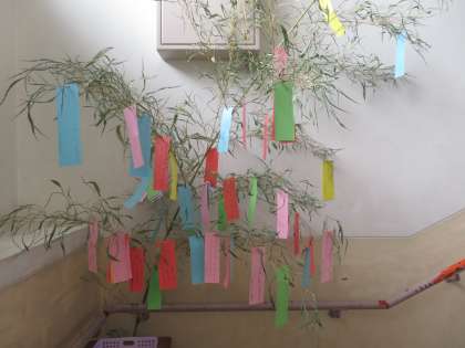 子どもたちが願い事を書いて飾っています。