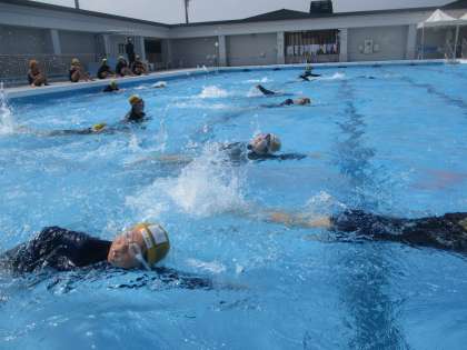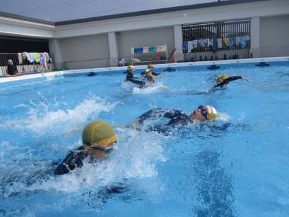 今日は、水泳学習をしました。みんなでバタ足やクロール、平泳ぎを泳いだ後、今どれだけ泳げるかを確かめました、どの子も自分の全力を出し切って頑張りました。周りの子は、「もうちょっとやぞ!」「最後まであきらめるな。」と応援の声をかけていました。