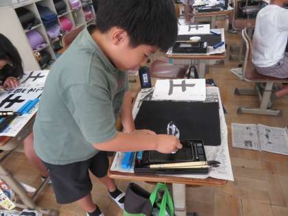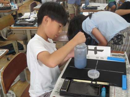練習で使った半紙で残った墨汁を吸い取っていきます。