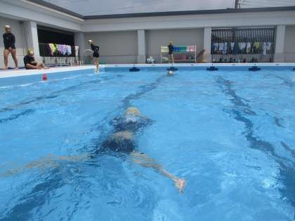 体育科では、「水泳運動」の学習を進めています。今日は今どれだけ泳げるかを確かめました。前回泳いだ時より記録が伸びた子や初めて25mが泳げた子、長い距離を泳ごうと挑戦した子など、どの子も前向きに頑張っていました。