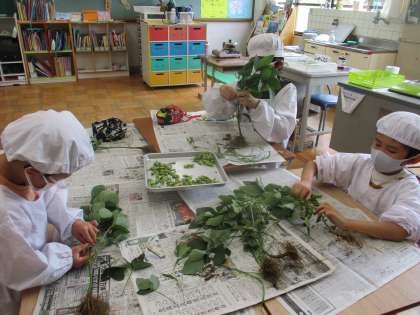 そろそろ枝豆も膨らんできたので,みんなでクッキングをすることにしました。
