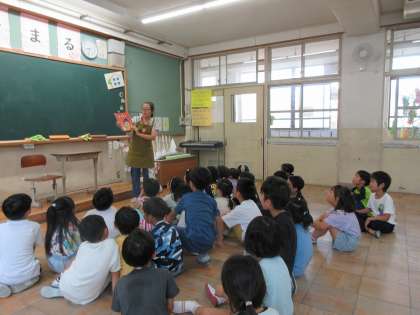 PTAの方に、朝の読み聞せをしていただきました。カレーが逃げ出す話で、お話が終わるころには「カレーが食べたいなあ…」とすっかりお話に入り込んでいました。
