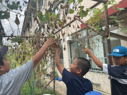 「つるつるしてる!」とみんな興味津々に触っていました。