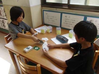 5年生では、自由進度学習(自己選択・決定学習)という学習方法で算数科「整数」と社会科「水産業のさかんな地域」の学習に取り組んでいます。自分たちで学習計画を立て、苦手なことから取り組んだり、得意なことを先に終わらせたりと子どもたち一人ひとりが自分に合った計画を考えて取り組んでいます。