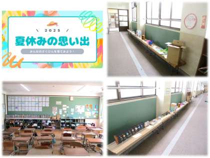 夏休みにみんなが頑張って仕上げた作品を、教室内や廊下に展示しています。