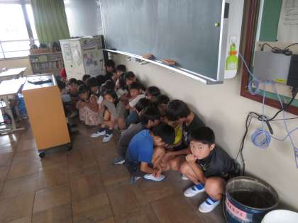 落ち着いて行動し、静かに放送を聴いていました。今、どこにいるかを真剣に聞き、取り組むことができました。「大きな荷物」の合言葉を忘れないようにしましょうね!