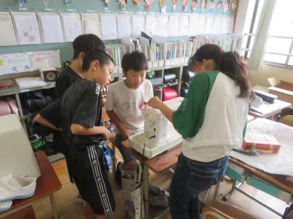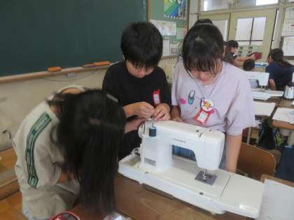 家庭科の学習で、久しぶりにミシンを使いました。上糸のかけ方や下糸の通し方を忘れているかと思いましたが、数人集まって協力すると準備することができました。安全に気を付けてミシンを扱ってほしいです。