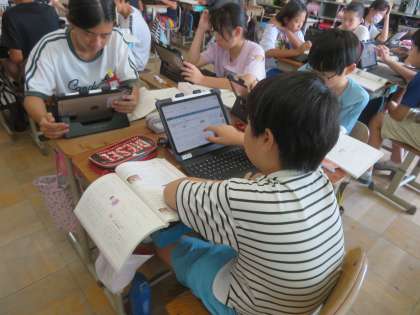 国語科の学習で、インターネットを使ってニュースを読みました。新聞とは違い、コメント欄があることや関連ニュースへのリンクがあることについて知り、利便性と危険性についても知ることができました。