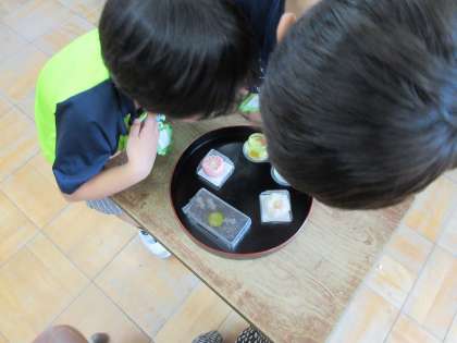 道徳科で昔から伝わる和菓子について学びました。「お月見の時に食べたよ。」「見るだけで涼しくなるね。」と和菓子のよさにふれることが出来ました。